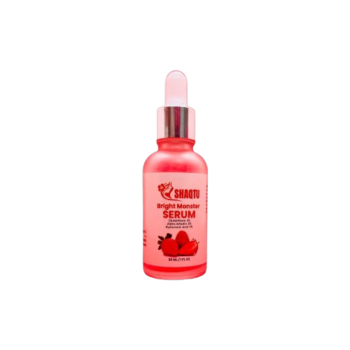 Brighten your skin with Shaqtu Bright Monster Serum, enriched with Glutathione, Alpha Arbutin, and Hyaluronic Acid. Designed to fade dark spots, deeply hydrate, and give you a radiant, youthful glow naturally. -